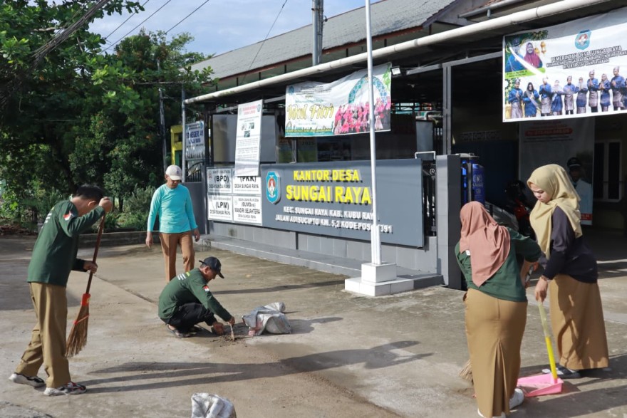 Gotong Royong Pembersihan Kantor Desa Sungai Raya dalam Meningkatkan Kebersihan dan Kebersamaan